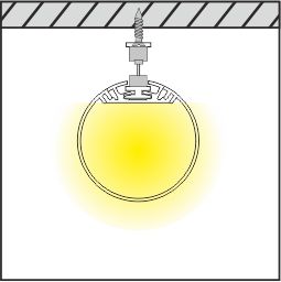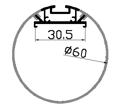 Круглий алюмінієвий профіль підвісний діаметром 60мм для декоративного підсвічування для LED стрічки завширшки не більше 30мм. Розсіює світло на 320град. Йде в комплекті з лінзою опал, 2-ма заглушками і 2-ма кріпильними ел-ми на 1м. Загальна довжина профілю 3м.