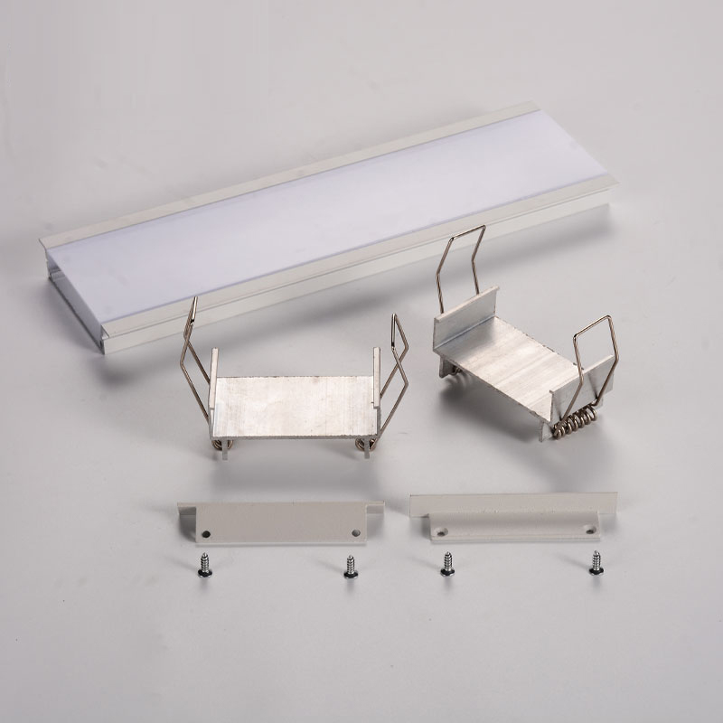 Алюмінієвий профіль вбудований із фланцем шириною 66мм для декоративного підсвічування для LED стрічки завширшки не більше 42мм. Розсіює світло на 120град. Йде в комплекті з с линзой опал,2-ма заглушками, 2-ма пружинами на 1м. Загальна довжина профілю 3м.
