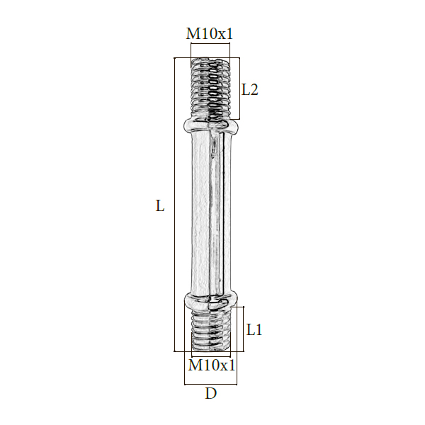 | Розмiр: | Діаметр(D): 14 мм, Загальна довжина(L): 90 мм, Довжина 1(L1): 7 мм, Довжина 2(L2): 10 мм, Вид різьби: M10x1 |