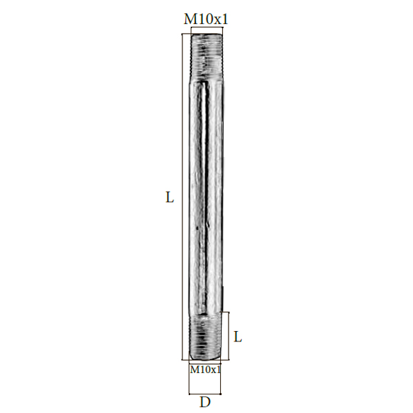 | Розмiр: | Діаметр(D): 10 мм, Загальна довжина(L): 200 мм, Довжина 1(L1): 13+2 мм, Вид різьби: M10x1 |