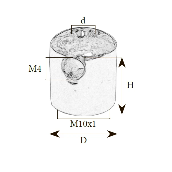 | Розмiр: | Діаметр(D): 12 мм, Діаметр отвору(d): 6 мм, Висота(H): 12 мм, Вид різьби: M10x1 |