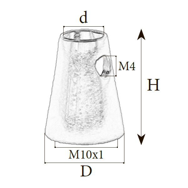 | Розмiр: | Діаметр(D): 8 мм, Діаметр отвору(d): 6 мм, Висота(H): 11 мм, Вид різьби: M10x1|M4 |