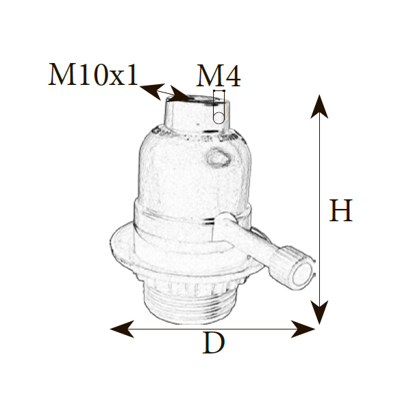 | Розмiр: | Діаметр(D): 55 мм, Висота(H): 70 мм, Тип патрона: E27, Вид різьби: M10x1 |
