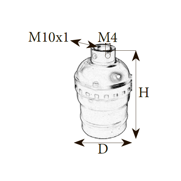 | Розмiр: | Діаметр(D): 35 мм, Висота(H): 55 мм, Тип патрона: E27, Вид різьби: M10x1 |