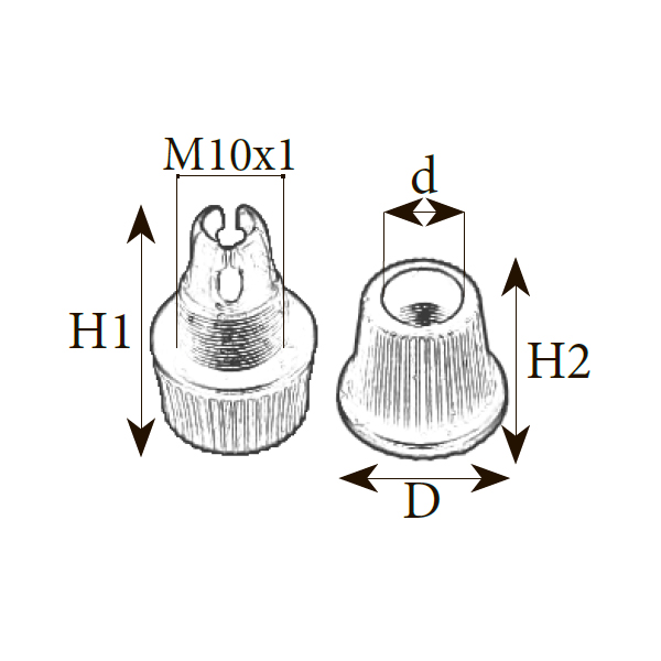 | Розмiр: | Діаметр(D): 15 мм, Діаметр отвору(d): 6 мм, Вид різьби: M10x1, Висота першого елемента(H1), 22 мм |