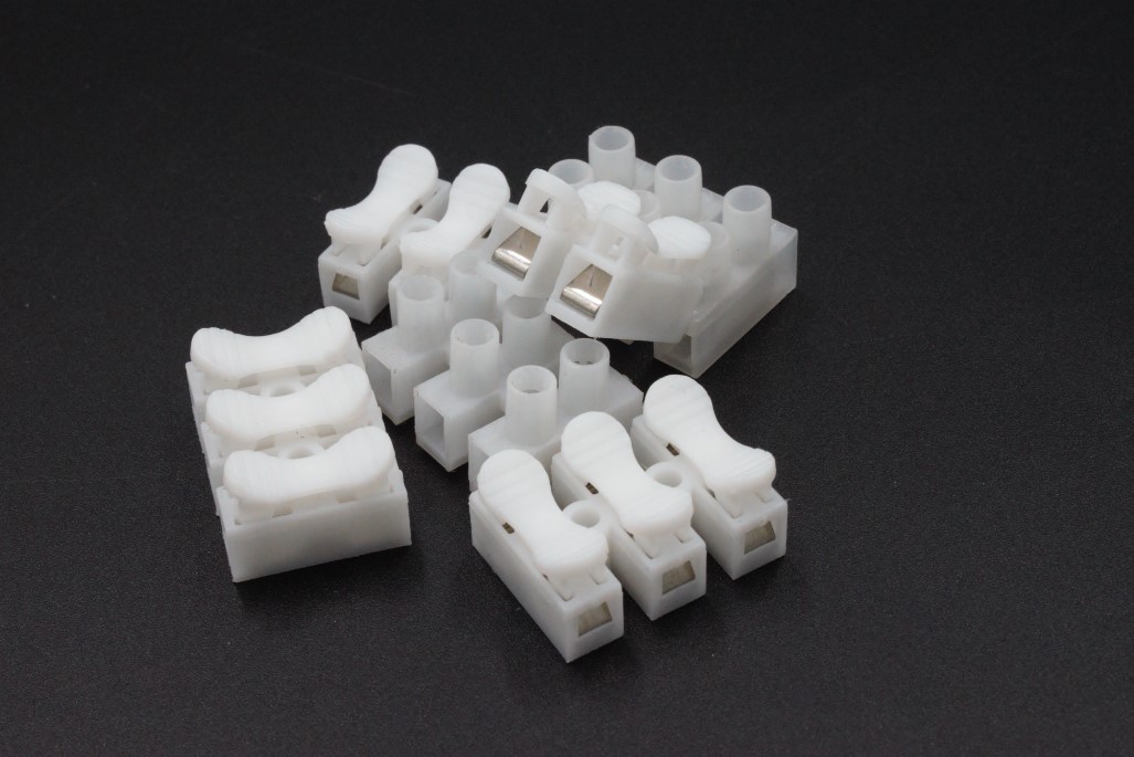 Нажимна клемна колодка з трьома контактами для з'єднання і ізоляції дротів